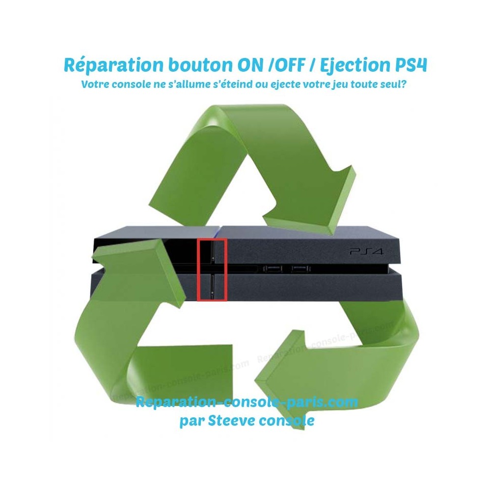 Agrandir l'image Le bouton power ou éject de votre PS4 ne fonctionne plus, un choc ou l'usure peut provoquer un dysfonctionnement. Les cas de pannes les plus fréquentes : les chutes, bouton poussoir cassé...